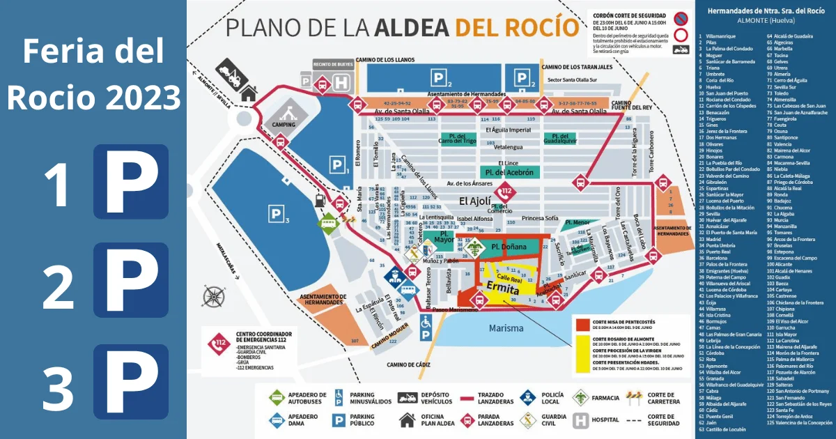 En la última edición de la Romería del Rocío, el precio del estacionamiento en la aldea del Rocío fue de 16,95 euros por día. Este precio incluye la vigilancia y el control de acceso al aparcamiento.