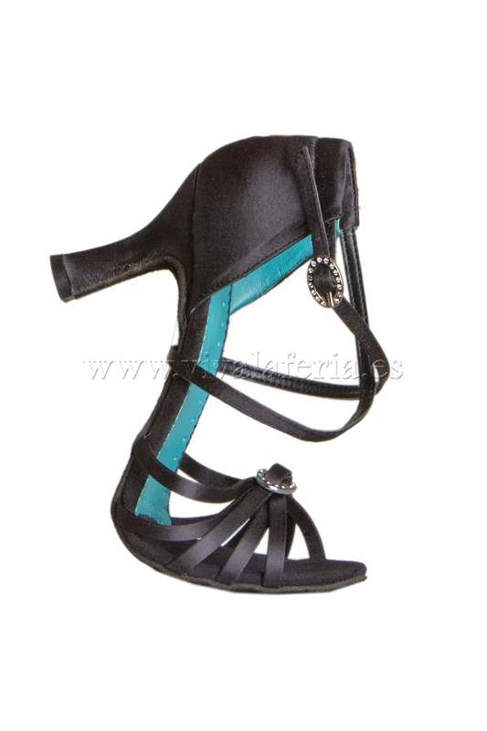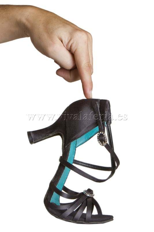 Toe straps, open toe and embellishments. Heel with ankle strap and buckle.
