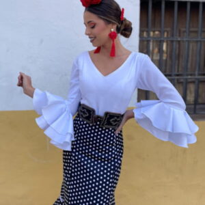 Il set di flamenco è composto da flamenco o gonna a spruzzo e una camicetta a spruzzo o un corpetto di flamenco. Scegli la tua gonna flamenco di un colore liscio o modellato (fiori, talpe o stampe miste) e combinarla con una camicetta di cervello o flamenco. Per finire il set di flamenco osa con uno qualsiasi dei nostri accessori flamenco .