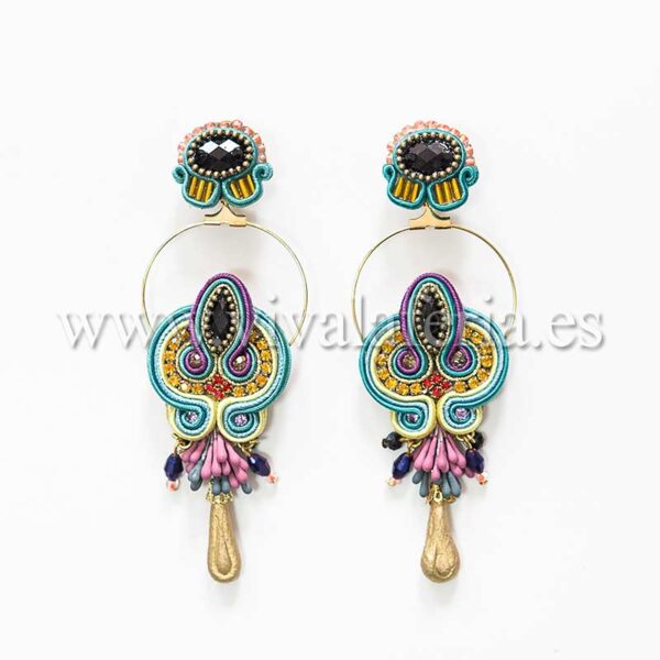 Los pendientes Aymar son unas piezas fruto de la última colección de alta bisutería de Candela de Reina. Con un diseño 100% artesanal se muestran delicados y sugerentes con aires a flamenco vintage. La originalidad de sus sinuosas formas y excelente combinación de colores solo es capaz de conseguirlo esta excepcional diseñadora. Estos zarcillos se convertirán en tu complemento flamenco ideal aptos para todo tipo de eventos: ferias, romerías, tablaos… Marca la diferencia con estos pendientes de flamenca de los de “para toda la vida”.