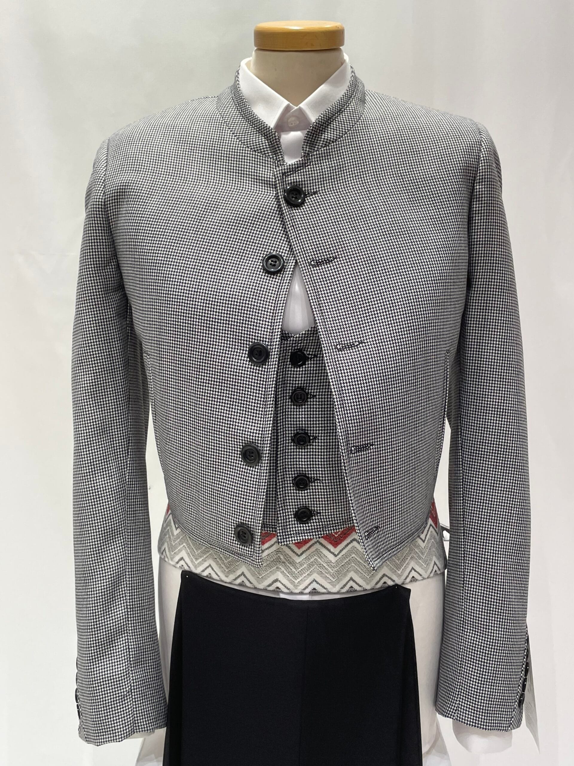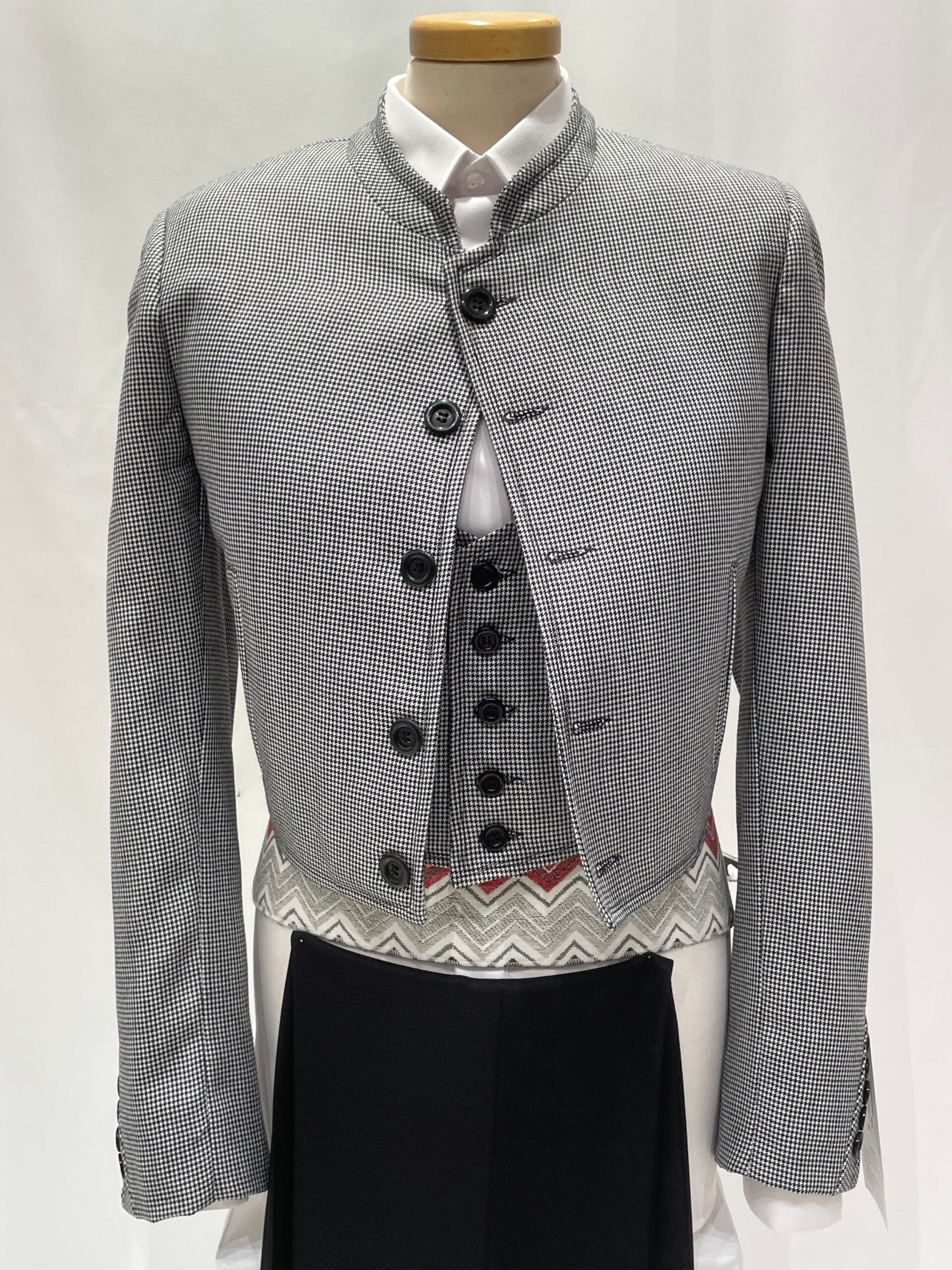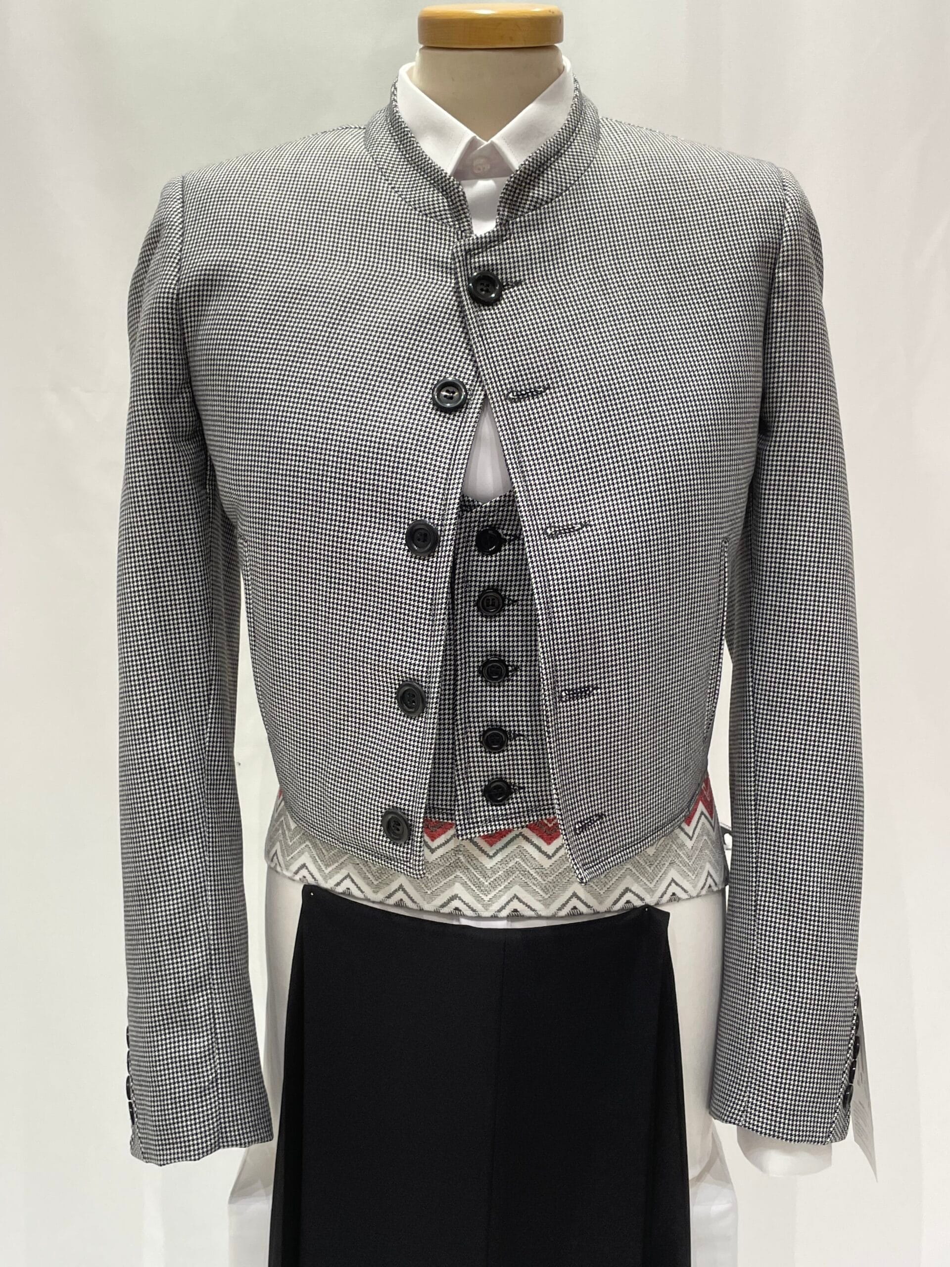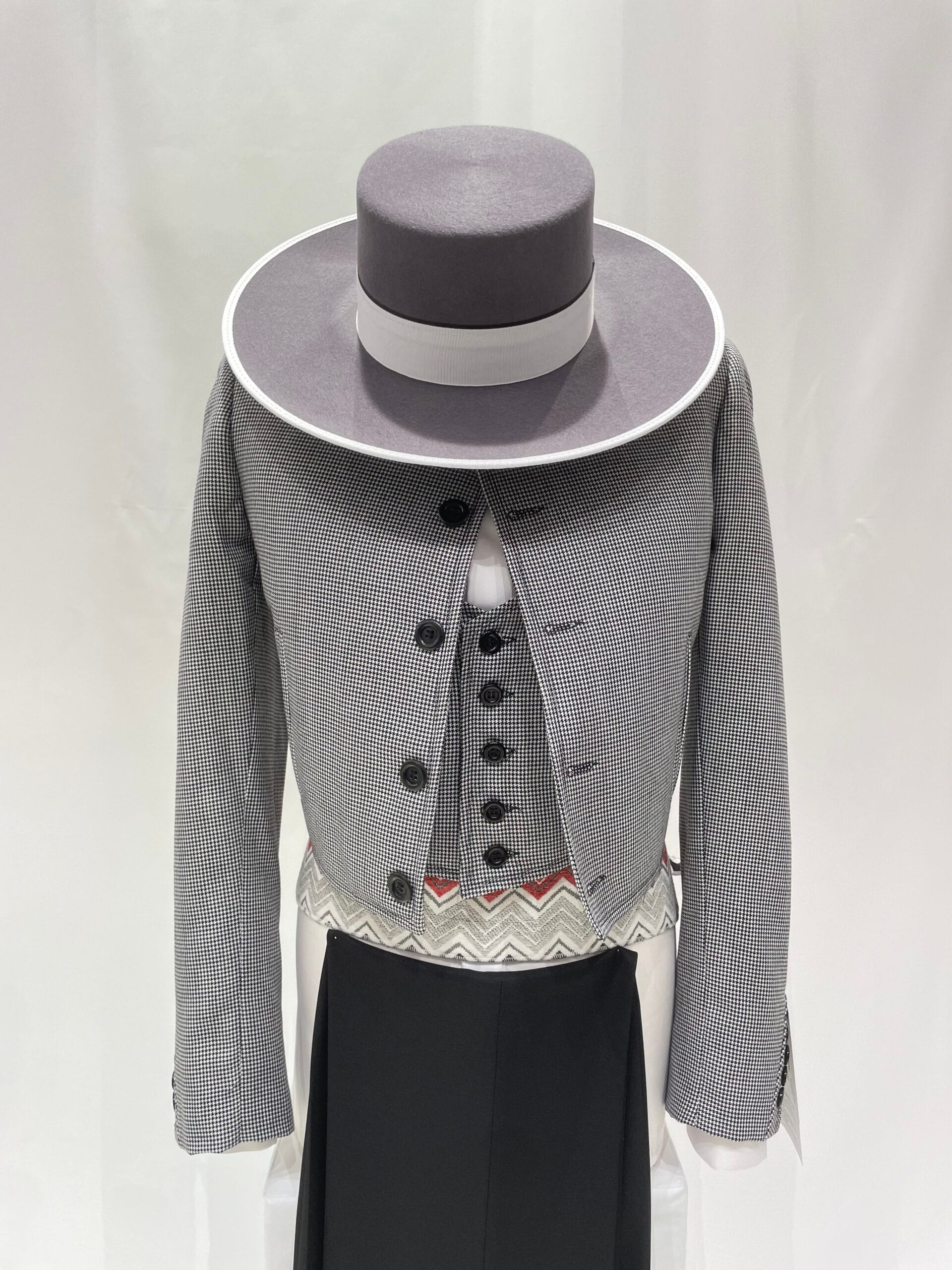Con diseño atemporal que no pasa de moda el cual se ha recuperado de tiempos pasados muy presentes en la moda campera y en la doma vaquera. El tejido pata de gallo está disponible en los colores Negro, Gris y Azul.