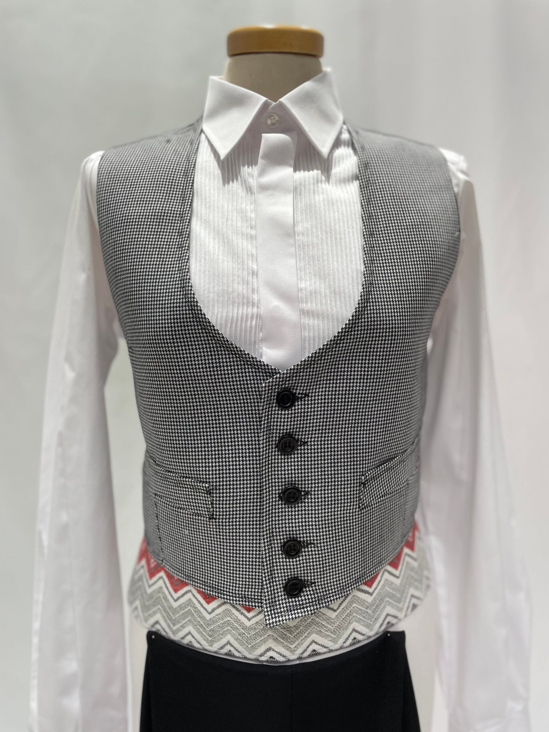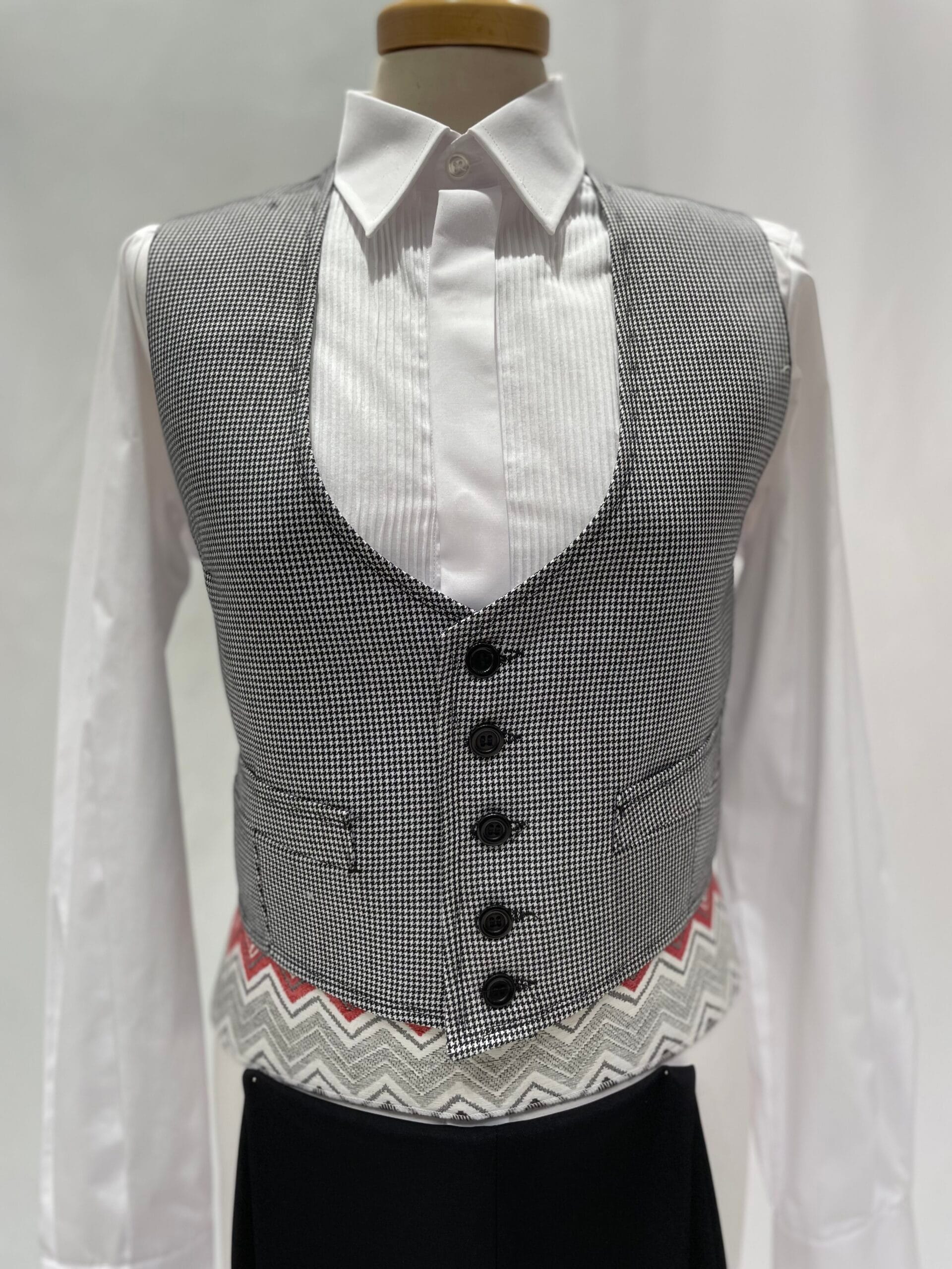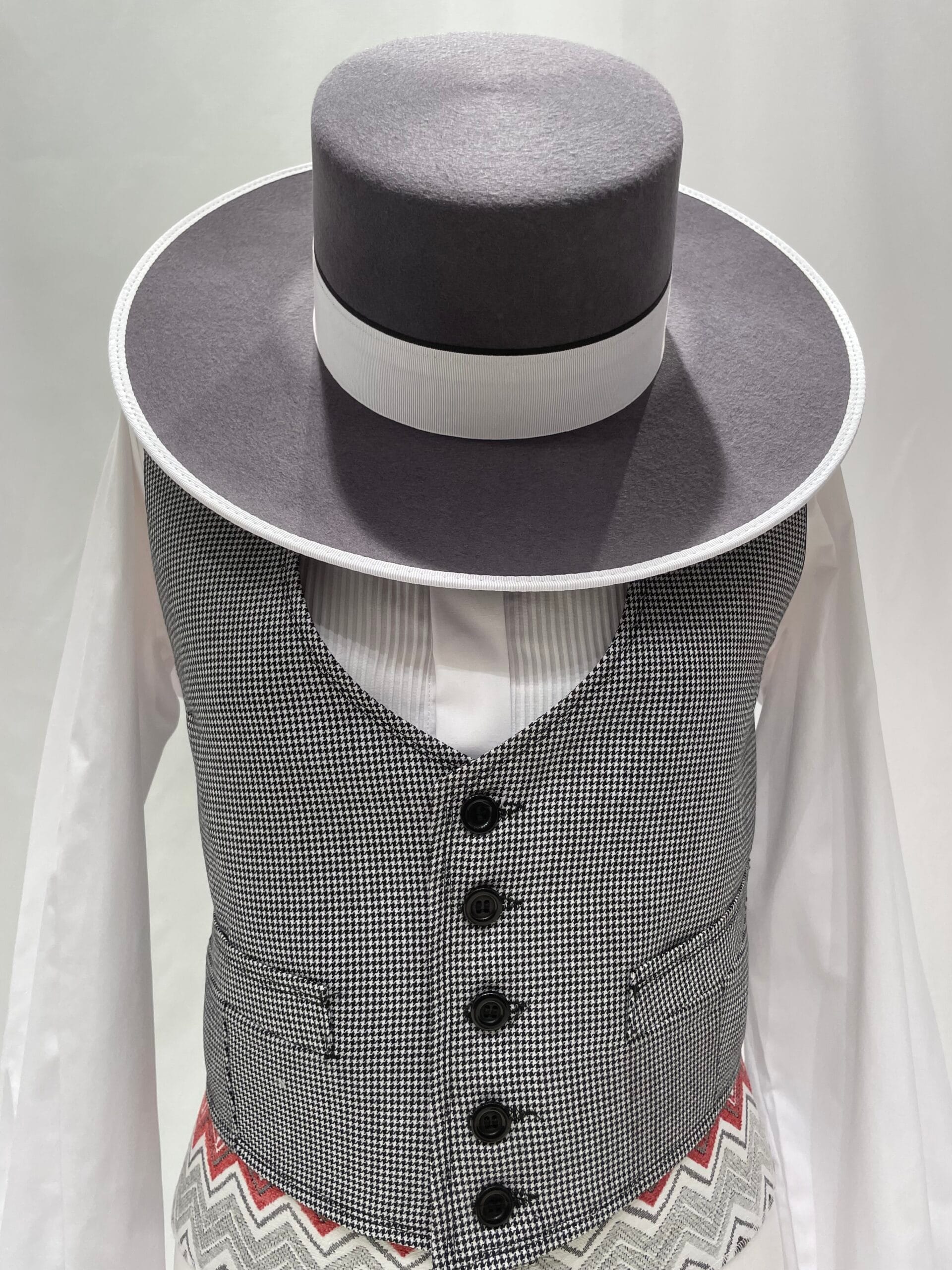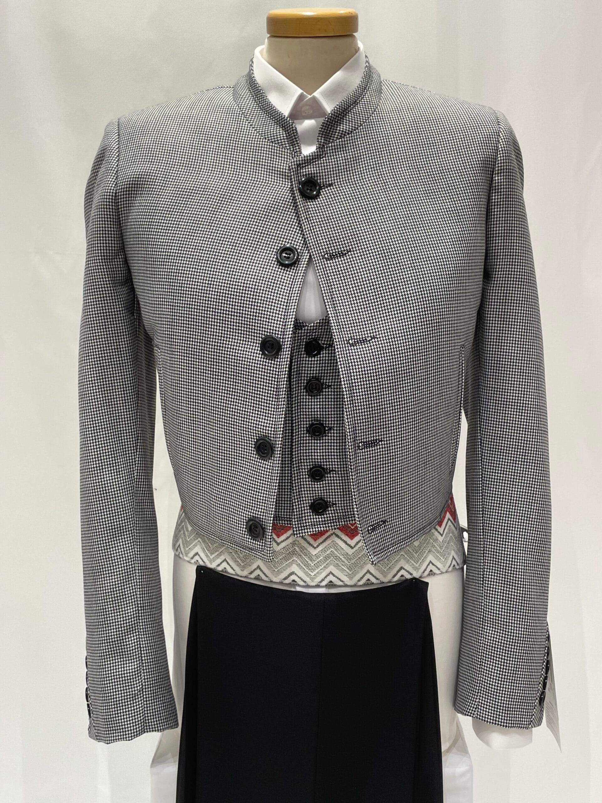 Con diseño atemporal que no pasa de moda el cual se ha recuperado de tiempos pasados muy presentes en la moda campera y en la doma vaquera. El tejido pata de gallo está disponible en los colores Negro, Gris y Azul.