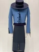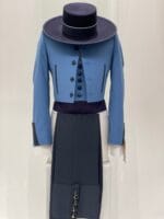 Este diseño combina elegancia y tradición con un toque atrevido gracias a su combinación de colores: la chaqueta y el chaleco en un sofisticado azul azafata combinado con azul marino complementados con la calzona en un sobrio azul marino.