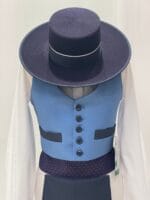 Chaqueta y chaleco: Azul azafata, un color llamativo que aporta un aire fresco y moderno sin perder el carácter clásico del traje campero.