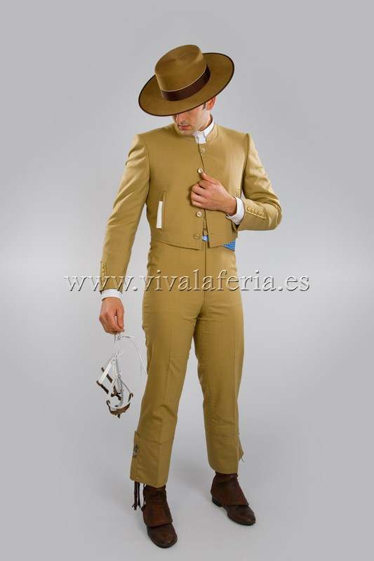 Traje Campero Cuadritos Lycra Beige Tostado