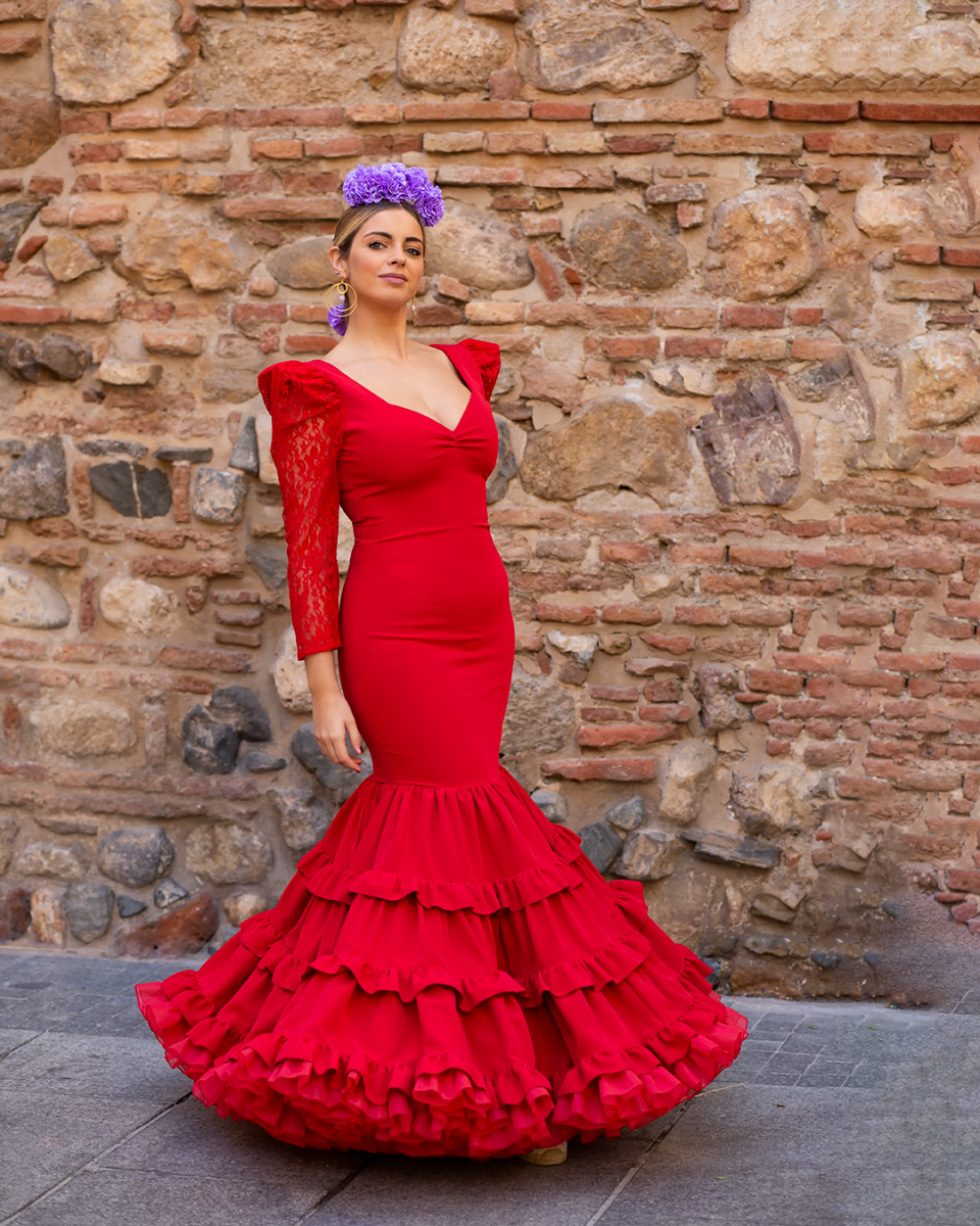 Traje de gitana colección Viva La Feria modelo Plata color rojo