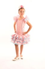 Vestido de flamenca corto para niña rosa modelo Cayetana